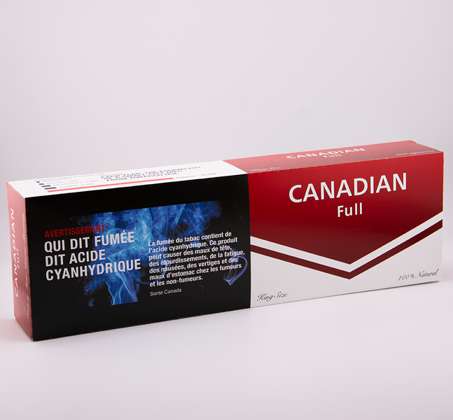 Each puff of Canadian Full smokes delivers a rich, robust tobacco flavor – smooth and potent. These come King Size with 20 cigarettes per pack, each foil-sealed and ready to go. Filters are solid, keeping the draw clean and easy – even on longer smokes.