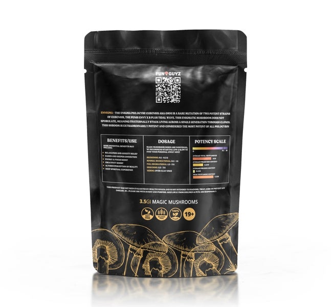 The Enigma strain, aka OMNI, is the most potent and rare mutation of Psilocybe cubensis that recently won 1st and 2nd place in the Psilocybin Cup 2022 held in Oakland, California. Enigma magic mushrooms are a “blob mutation” during the Tidal Wave plus Penis Envy X B crossbreeding.
