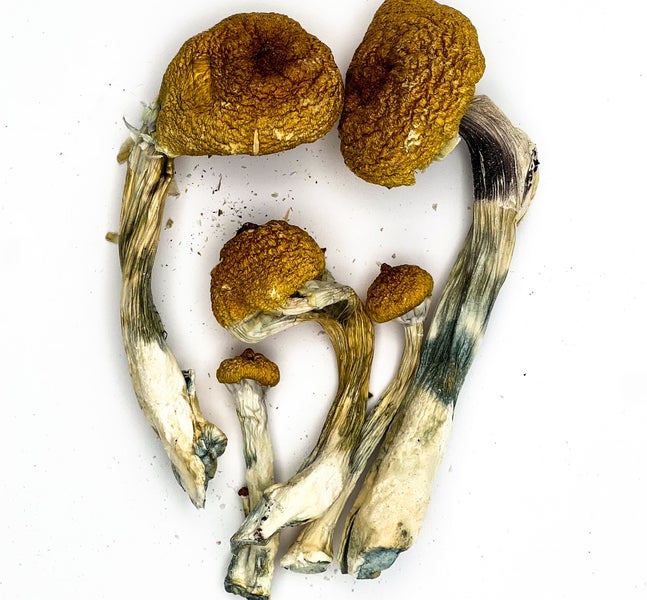 Colorful, yellowish appearance is what really makes Golden Teachers stand out and worth their name. Unlike other magic mushrooms, they have an elegant “skirt” when matured.- Size: above average, 3-8 inches (7-20 cm) tall;