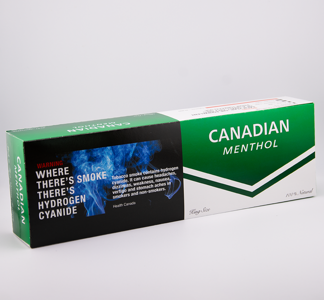 The menthol in Canadian Menthols isn’t overpowering. It’s sharp on the first draw and smooths out as you go. These come in King Size packs, 20 smokes each, all foil-wrapped to stay fresh. Filters are firm and do a good job balancing the cool hit with the tobacco body.