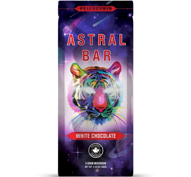 - Whole Astral bar at a time —68 grams of chocolate — 5 grams of the shroom contents: that would be considered a nearly heroic dose, reserved for experienced psychonauts. You’re guaranteed to dive into a full-scale psychedelic trip for 6 to 8 hours, with a deeply introspective and spiritual experience.