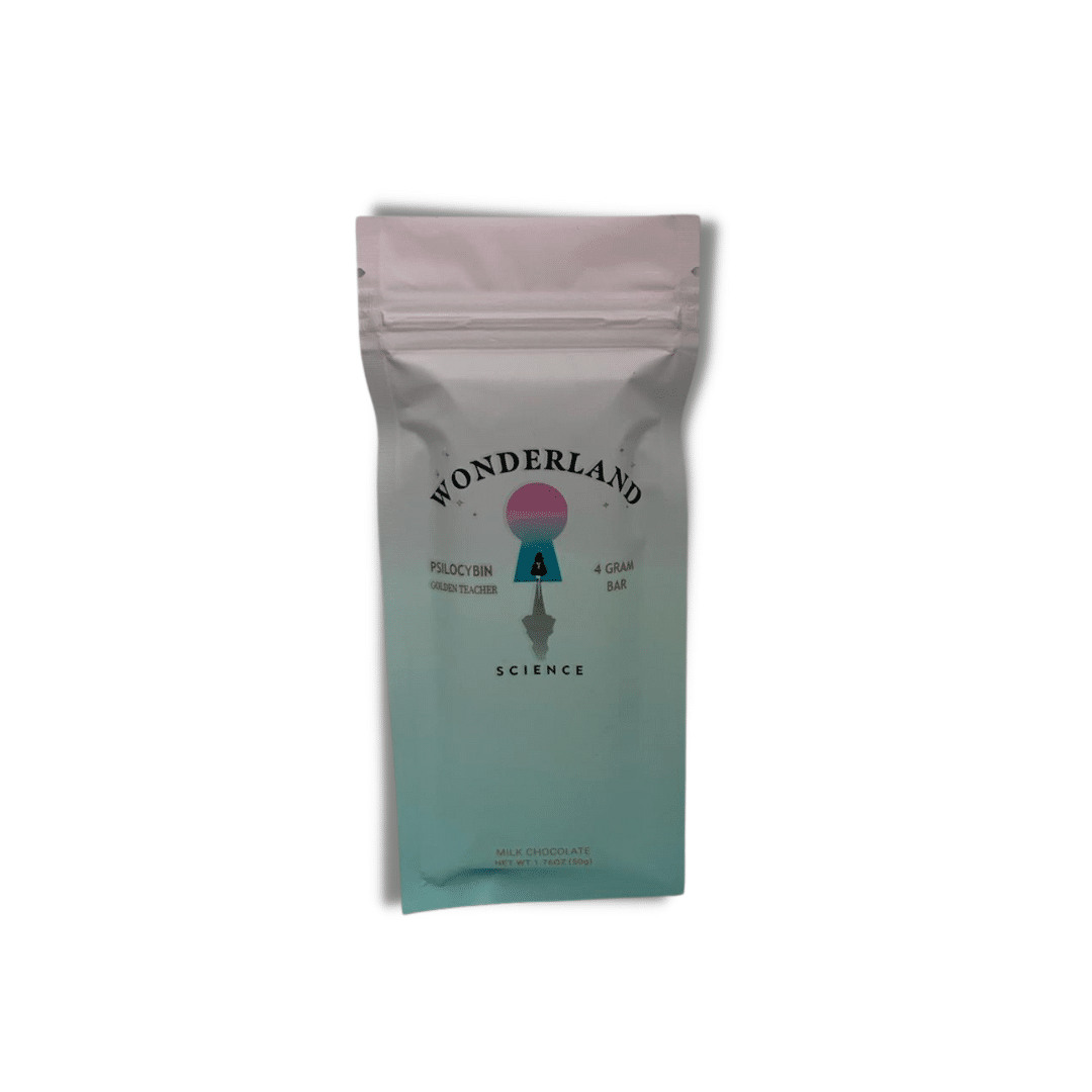 «Welcome to Wonderland!» says the back of the pack, and it pretty much sums up the experience this treat can deliver. Depending on the dose, you either get a creativity boost with anxiety relief, OR you get a full-scale Wonderland experience, a deeply spiritual and otherworldly experience. Wonderland Mushroom Chocolate bar is a top-shelf dessert of its kind. It has:- 4 grams of Golden teachers — one of the most popular Psilocybe cubensis strain on the market;