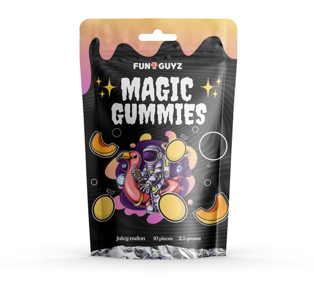 Tiny, chewy and tasty, FunGuyz Melon psilocybin gummies are not that innocent as they look! Each one contains 0.25 or 0.5 grams of psilocybin extract. That’s what makes them truly different. Magic mushroom gummies FunGuyz come in stunning packs of 10 gummies, each containing 250mg or 500mg of pure psilocybin depending on the strength you choose. NOTE: These magic mushrooms gummies do not contain dried mushrooms. They contain the active substance from the shrooms itself. Psilocybin instead of dried shroom pieces is beneficial for a whole ton of reasons:- No shroomy taste that many enthusiasts find unpleasant;
